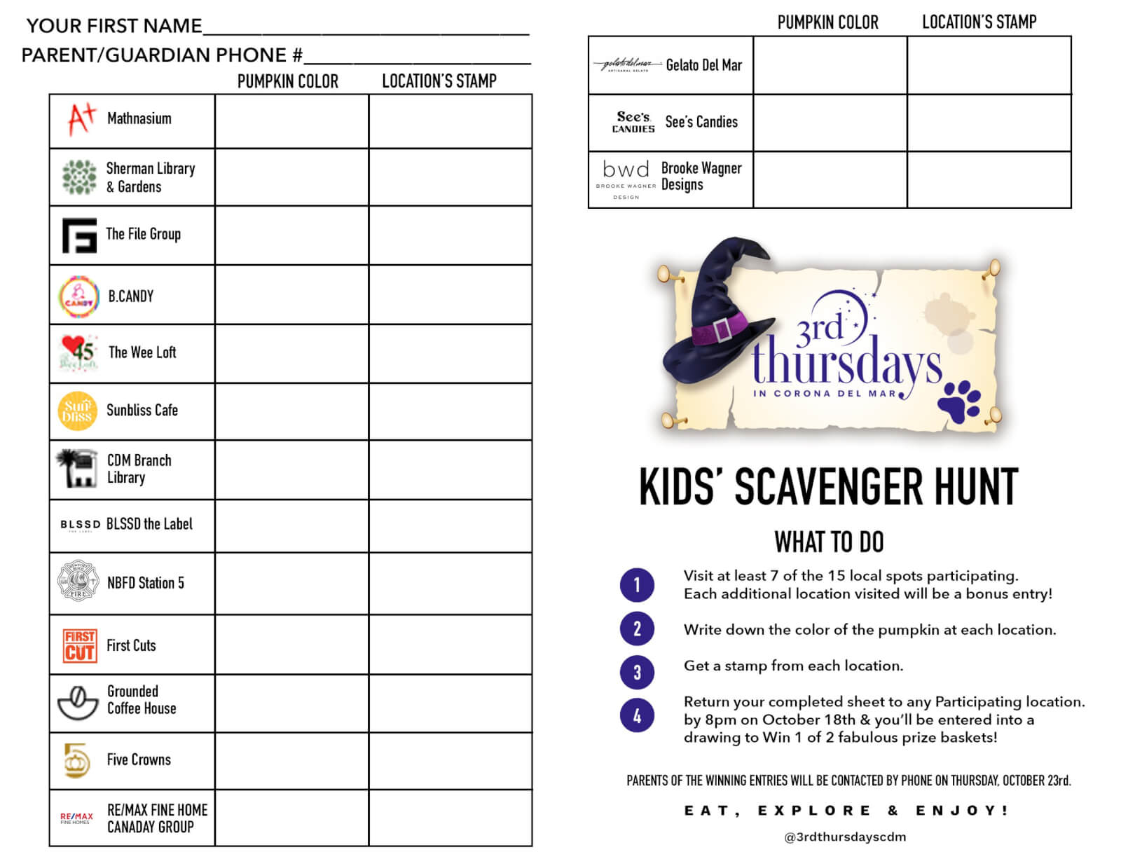 - Participating Businesses: BLSSD, CdM Branch Library, Mathnasium, First Cuts, Wee Loft, NBFD Station 5, Sherman Gardens, Sunbliss, Gelato del Mar, File Group, Grounded Coffee, B. Candy, Five Crowns