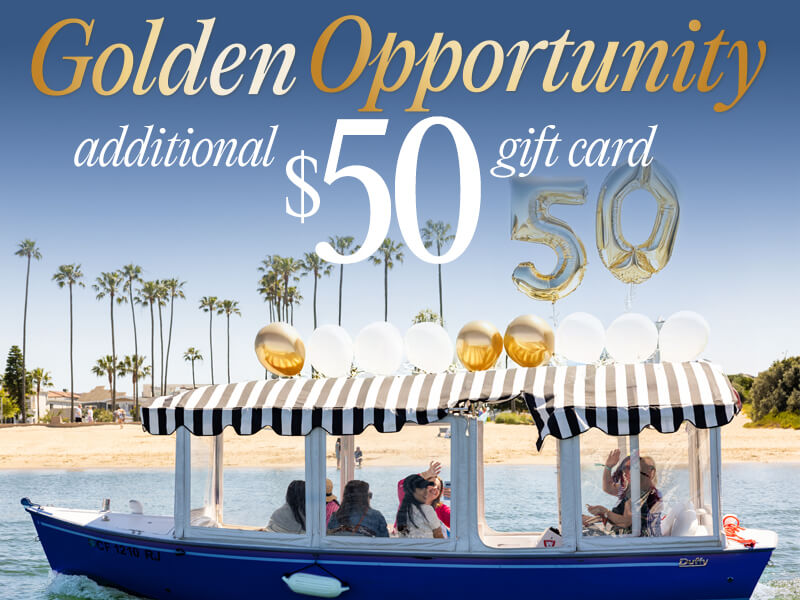 In honor of our 50th anniversary, we’re offering an additional gift card to add to our current promotion! Earn a $50 gift card for your booked event sourced through Visit Newport Beach, from now until December 31st, 2025. That’s a total of $400 in rewards! Joining the party is easy: